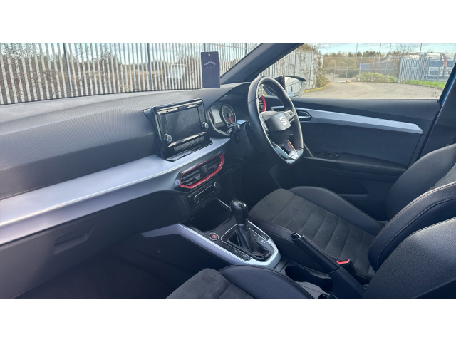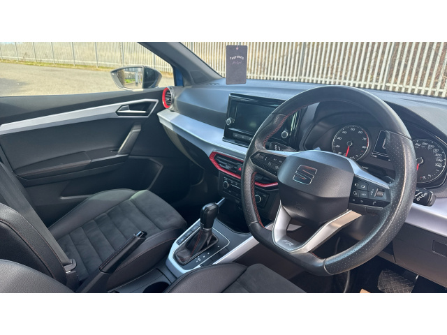 "features": "'Lights On' Reminder warning buzzer, Analogue cockpit with physical dials, Digital clock, E-call, Electric speed sensitive power steering, Full Link Smartphone Integration with Mirror Link, Apple Car Play, Google Android Auto with USB Type C cable for Apple and Android compatibility, Lane keeping system, Low fuel warning light, Outside temperature display, Rear parking sensor, RPM counter, Seat connect with safety, service and remote, SEAT Drive profile - Four different models normal-sport-eco-individual, steering response, throttle response and gear shifts mode, Trip computer, Wireless phone charger, Bluetooth interface for hands free and audio streaming, DAB digital radio and AM/FM radio, Media system with 8.25\" colour touchscreen with USB port (type c), Steering wheel mounted audio controls, Anti theft roof antenna, Automatic activation of hazard warning lights, Body coloured bumpers, Body coloured door handle inserts, Chrome roof rails and window surrounds, Dark tinted rear windows, Dimming rear view mirror, Electric front/rear windows, Electrically adjustable and heated door mirrors, Front fog lights with cornering function and rear fog light, FULL LED automatic headlights with dynamic headlight range control, coming and leaving home, LED daytime running lights, LED rear tail lights and licence plate lights, Protective side mouldings, Rear side wing doors, Rear spoiler, Rear window wash/wipe, Roof colour door mirrors, Third brake light, Twin exhaust pipe styling hidden exhaust pipe, Visible VIN plate, Windshield wiper with intermittent control and potentiometer, 2 cupholders, 3 seat bench in 2nd row, 60/40 split folding rear seat, Aircare filter, Black interior roof, Double boot floor, Driver sunvisor with covered mirror + card holder, Dual zone climate control, Front comfort seats, Front courtesy light with 2x front and 2x rear reading lights, Gear shift indicator, Height adjustable front seats, Height/reach adjustable steering column, Illuminated boot, Instrument lighting with brightness control, Interior ambient lighting, Interior light in footwell, central console and door panel, ISOFIX points in outer rear seats with top tether anchorage points, Microsuede cloth upholstery, Passenger sunvisor with vanity mirror, Perforated flat bottomed leather steering wheel/gear knob/handbrake with red stitching and FR logo, Single front passenger seat, Steering wheel mounted gearshift paddles, Two front and three rear height adjustable headrests, Interior chrome pack - Arona, 3 point seatbelts on all rear seats, ABS, Active front headrests, Child locks on rear doors, Driver and front passenger airbags with front passenger airbag de activation, front side and curtain airbags, Electronic stability control, Emergency Brake Assist (EBA) and front assist, Front and rear seatbelt reminder, Hill hold control, Multi-Collision braking, Tiredness recognition system, Traction control, Tyre pressure monitoring system, Alarm with back-up horn, Electronic engine immobiliser, KESSY Keyless entry and go, Locking wheel bolts, Remote central locking + deadlocks, Tow away protection, Titan black dashboard, ",