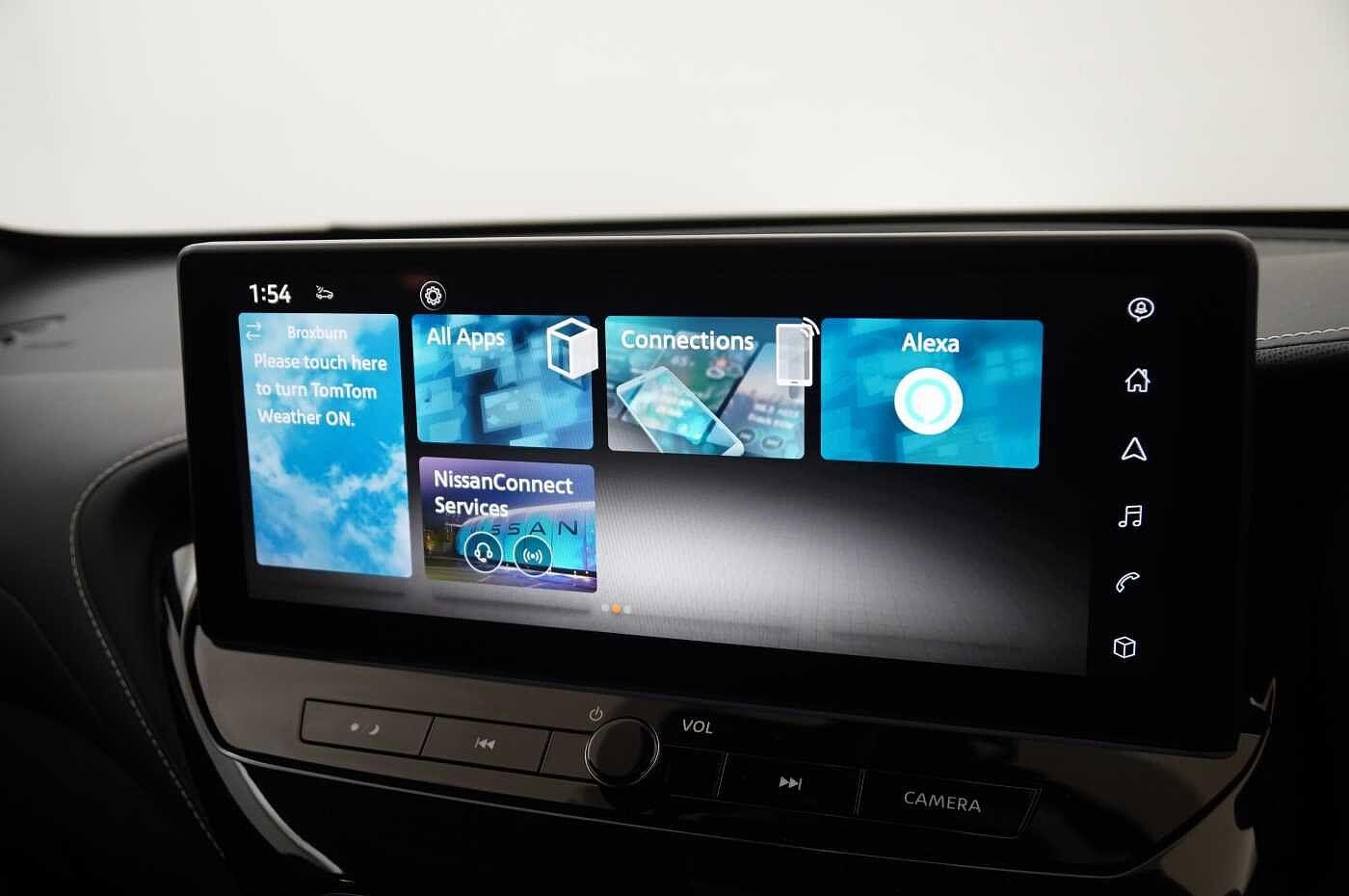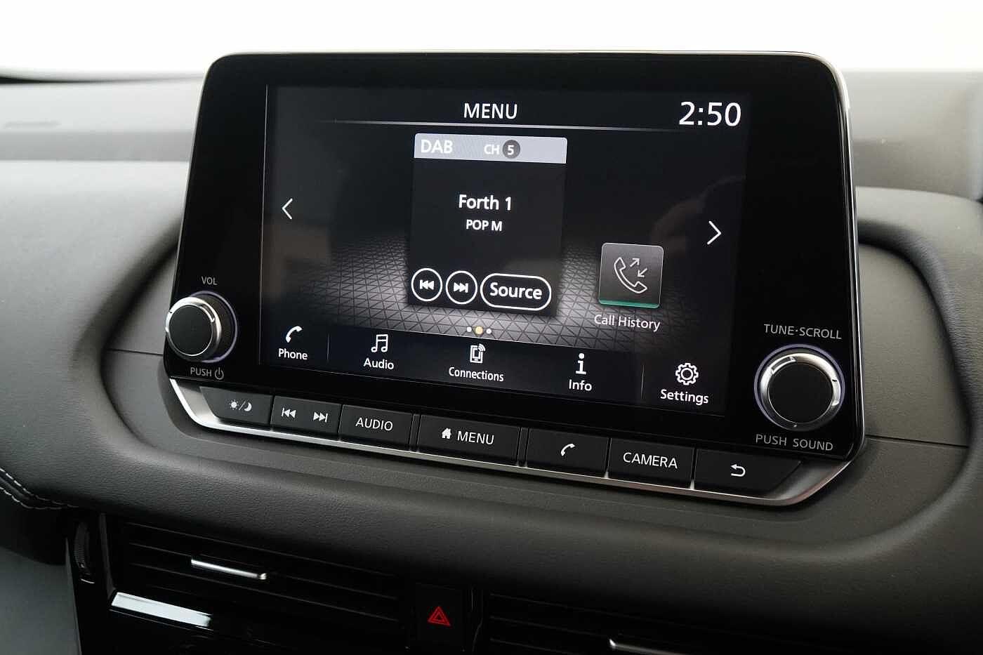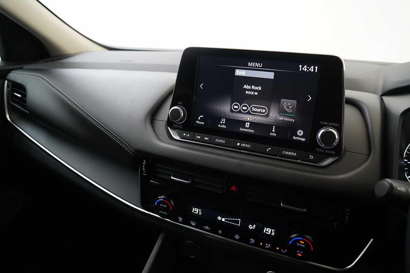 "features": "12.3\" full colour TFT screen combimeter, Drive modes select (Eco, normal and sport), Emergency and breakdown call, Front parking sensor, Idle start/stop system, Intelligent driver alert system, Intelligent lane intervention, Lane departure warning system, Nissan connect 12.3\" touch screen entertainment system, Nissan connect nav with TomTom traffic, Nissan connect services and Wifi connection, Outside temperature sensor, Power Steering, Rear parking sensor, Stop/start button, Traffic sign recognition, Trip computer, Voice recognition, Wireless Apple CarPlay and Google Android auto, Wireless Smartphone charger, 2 X Rear console USB port, 6 speakers, Bluetooth system, USB, Aux-in and 12V socket, DAB Digital radio, Auto dimming frameless rear view mirror, Automatic hazard signal with emergency stop signal, Body colour door handles, Electrically adjustable door mirrors with integrated indicators, Follow me home headlights, Front and rear electric window with one touch driver window, Heated and auto folding door mirrors, High beam assist, LED 3rd brake light, LED daytime running lights, LED headlamps, LED rear fog lamp, LED rear lamps, One touch passenger window, Rain sensor windscreen wipers, Rear privacy glass, Rear side wing doors, Rear wiper, Roof spoiler, Shark fin roof antenna in solid Black, Three blink turn signal, 3 height adjustable rear headrests, 3 seat bench in 2nd row, 60/40 split folding rear seat, Automatic climate control, Card holder on driver sunvisor, Cloth/Synthetic leather with melange fabric inserts, Driver side rear coat hanger, Driver/passenger sunvisors and vanity mirrors, Front and rear cabin lights, Front armrest, Front door pockets with bottle holders, Front head restraints, Front/rear passenger grab handles, Height adjustable driver's seat, Internal chrome door handles, Leather gearshift knob, Leather steering wheel, Luggage board, Luggage space lighting, Monoform sporty seats, Multifunction steering wheel, Rear door bottle holders, Single front passenger seat, Steering wheel mounted gearshift paddles, Synthetic leather kneepad, Telescopic steering wheel adjustment, Two cupholders in front centre console, Two rear isofix child seat anchorage points with top tether, Welcome light and console tray ambient lighting, ABS with EBD and brake assist, Active ride control, Active Trace Control, Driver and passenger airbags, Driver and passenger side airbags, Electric handbrake with auto hold function, Electronic Stability Programme (ESP), Front and rear curtain airbags, Height adjustable seatbelts, Hill start assist, Intelligent emergency braking with pedestrian and cyclist recognition, Rear door child safety locks, Seatbelt reminder for driver/front passenger and rear seats, Three 3 point rear seatbelts, Traction control, Tyre pressure monitoring system, VDC Dynamic Vehicle Control, Alarm, Immobiliser, Intelligent key and start push button with walk away lock and approach unlock functions, Remote central locking, 17\" Alloy wheels, ",
