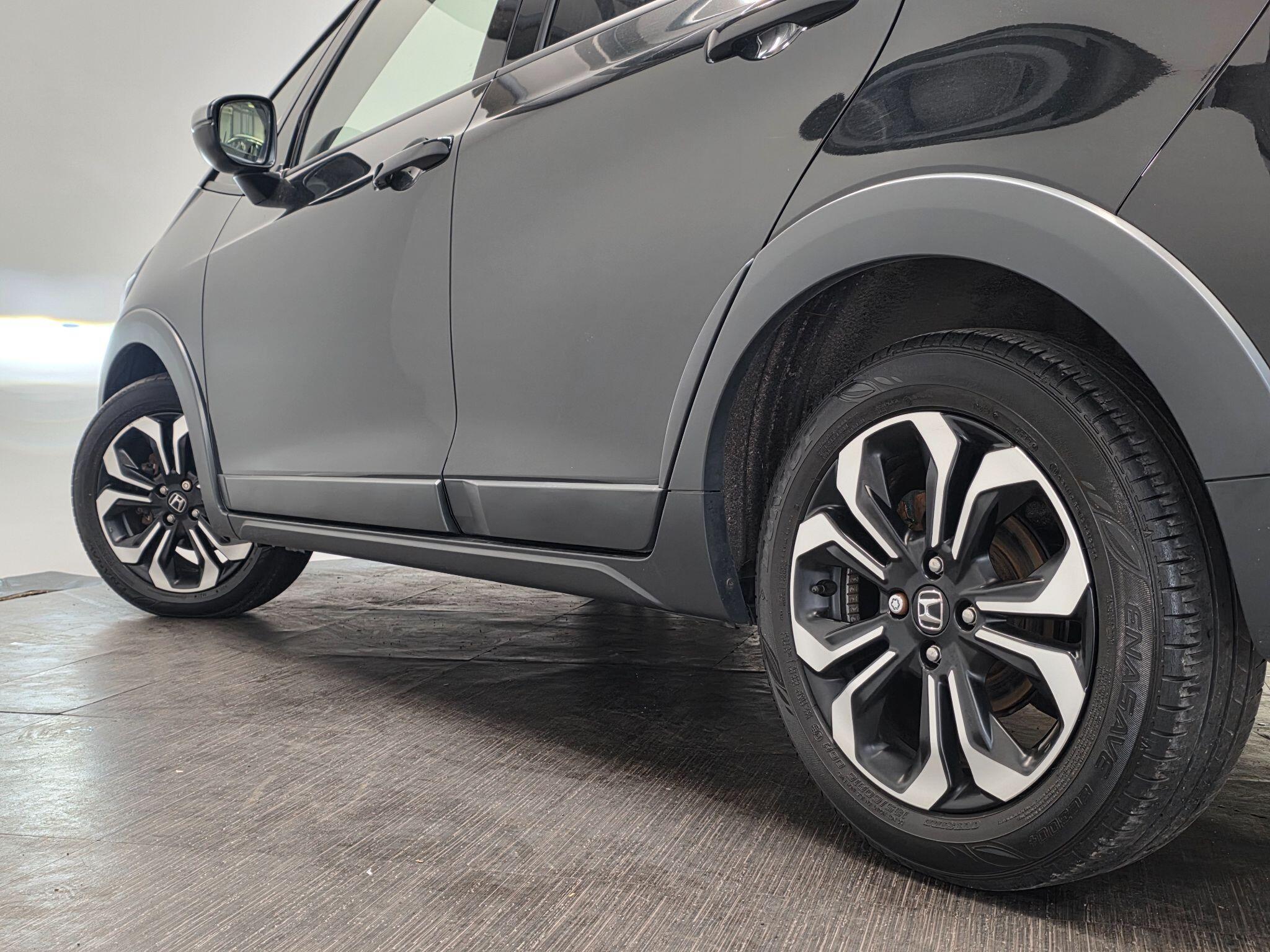 "features": "7\" TFT instrument cluster, Adaptive cruise control, Adjustable speed limiter, Agile handling assist, BLIS (Blind Spot Information System) with Cross Traffic Monitor, Bluetooth hands free telephone connection, Drive modes select (Eco, normal and sport), eCall emergency system, Electric power steering, Emergency stop signalling system, Forward collision warning, Front parking sensors, Handsfree power tailgate with walkaway close, Honda CONNECT with navigation, 9\" touchscreen, AM/FM/DAB/Apple Carplay and android auto, Idle stop, Intelligent speed limiter, Lane departure warning, Lane keep assist, Low speed following, Multi info display, Power meter, Rear parking sensors and rear view camera, Road departure mitigation, Tachometer, Traffic sign recognition, WiFi connectivity, Vehicle stability assist, 'Shark fin' mobile antenna, 2 USB sockets in rear, 2x USB Front socket (1 data & 1 charge), 4 speakers + 2 tweeters, Steering wheel mounted remote controls, Auto dimming rear view mirror, Auto folding door mirrors, Auto high beam, Automatic coming home lighting, Automatic headlights, Automatic rain sensing wipers, Body colour bumpers, Body colour tailgate spoiler, Body coloured door handles, Electric front and rear windows, Electrically adjustable and heated door mirrors, Exclusive styling in lower bumper black,Fog garnish paint emblem gray black lower door garnish with silver accent,Bumper skid garnish sharp silver, Front sequential turn, Front wiper de-icer, Headlight washers, Heated front windscreen, Heated rear window, High gloss side window surrounds, High level third brake light, LED daytime running lights, LED front fog lights, LED headlamps, Manual headlight levelling, Rear side wing doors, Rear wiper, Red and clean lens LED rear lights, Retractable/reverse auto tilt door mirrors, Variable front intermittent wipers, Windscreen shadeband, 3 rear headrests, 3 seat bench in 2nd row, 60/40 split folding rear seat, Ambient interior lighting, Cargo net hooks, Courtesy lights, Driver seat back pocket, Driver's seat height adjustment, Driver/passenger sunvisors with illuminated vanity mirrors, Dual automatic air conditioning, Front and rear map reading lights, Front head restraints, Front seat armrests, Heated front seats, Heated steering wheel, Isofix points, Luggage area under floor storage box, Magic seat flexibility system, Manual height/reach adjust steering wheel, Meter illumination light, Paddle shift controls, Passenger seat back pocket, Rear centre armrest, Rear ventilation, Silver interior door handles, Silver interior panels, Single front passenger seat, Smooth leather steering wheel, Tonneau cover, Trunk light, 3x3 point rear seatbelts, ABS+EBD+Brake assist, Anti-whiplash front headrests, Auto hold function, Collision mitigation braking system, Collision mitigation throttle control, Deflation detection system, Dual front SRS airbags, Electric child locks, Electronic parking brake, Front and rear curtain airbags, Front and rear safety belts with Emergency Locking Retractor, Front side airbags, Hill descent control, Hill start assist, Low speed safety system, Paddle deceleration control, Passenger SRS airbag cut-off device, Regenerative braking system, Door deadlocks, Honda super locks, Immobiliser, Keyless smart entry with push button start, Mirrors and windows key fob operation, Remote central locking with 2 remote folding keys, Security alarm, Tyre repair kit, ",