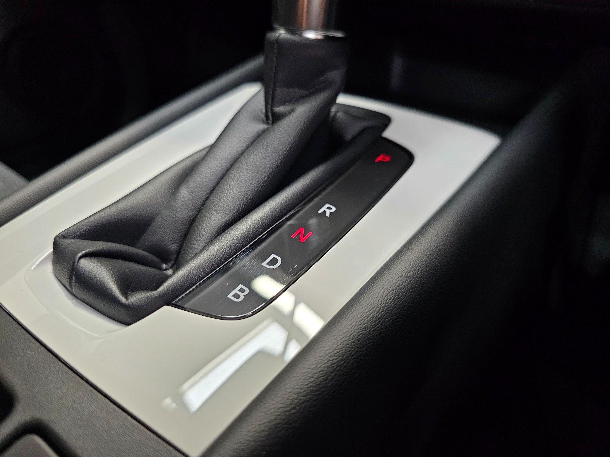 "Leather wrapped gear shift knob",