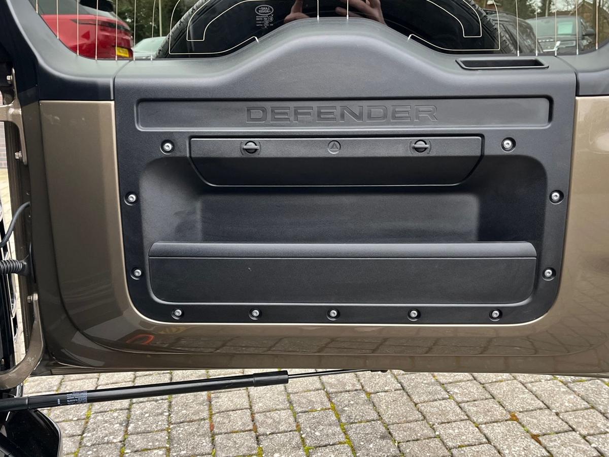 "Illuminated aluminum treadplates with Range Rover script",