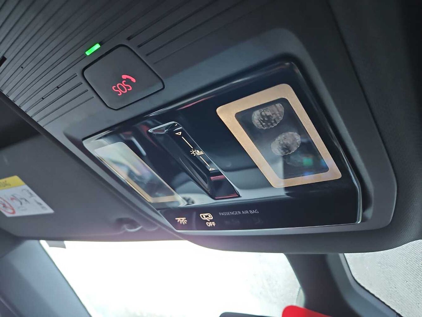 "Overhead glasses storage compartment",
