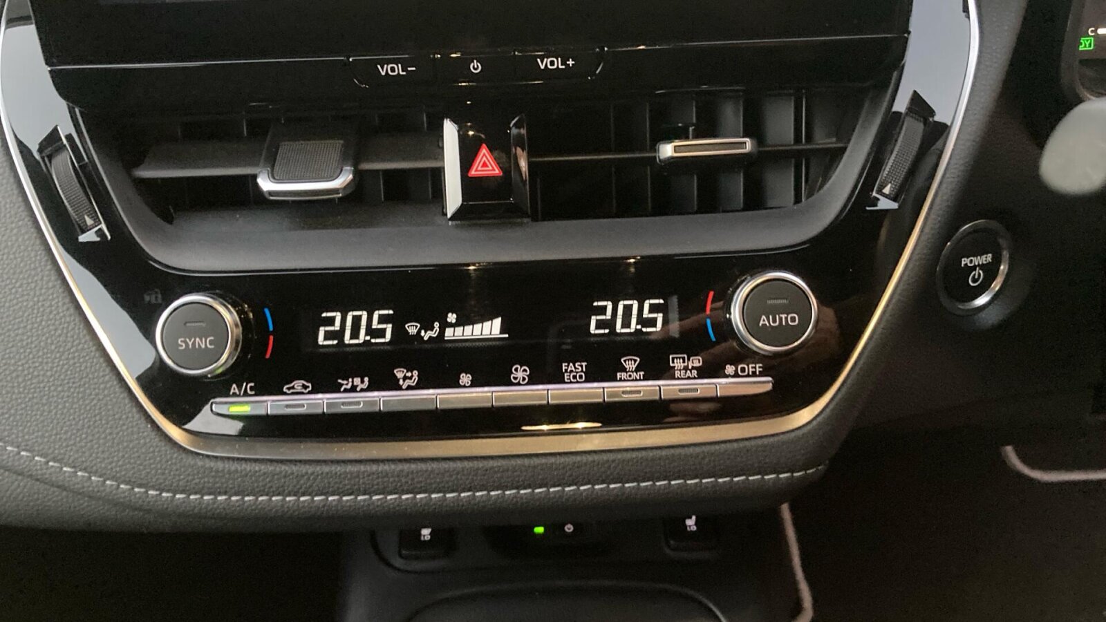 "Satin chrome surround on heater control panel",