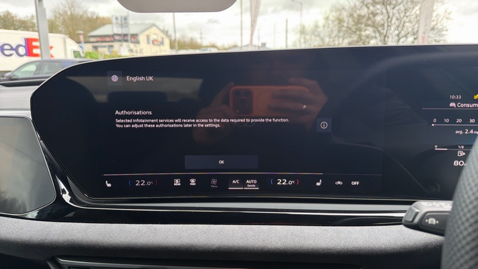 "Central facia display with digital clock, outside air temperature and audio information",