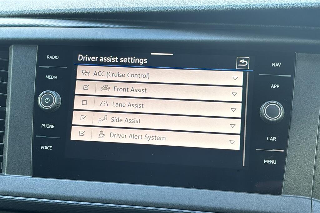 "Adaptive cruise control (ACC) with speed limiter, front assist (reacting vehicles pedestrian and cyclists) and follow to stop",