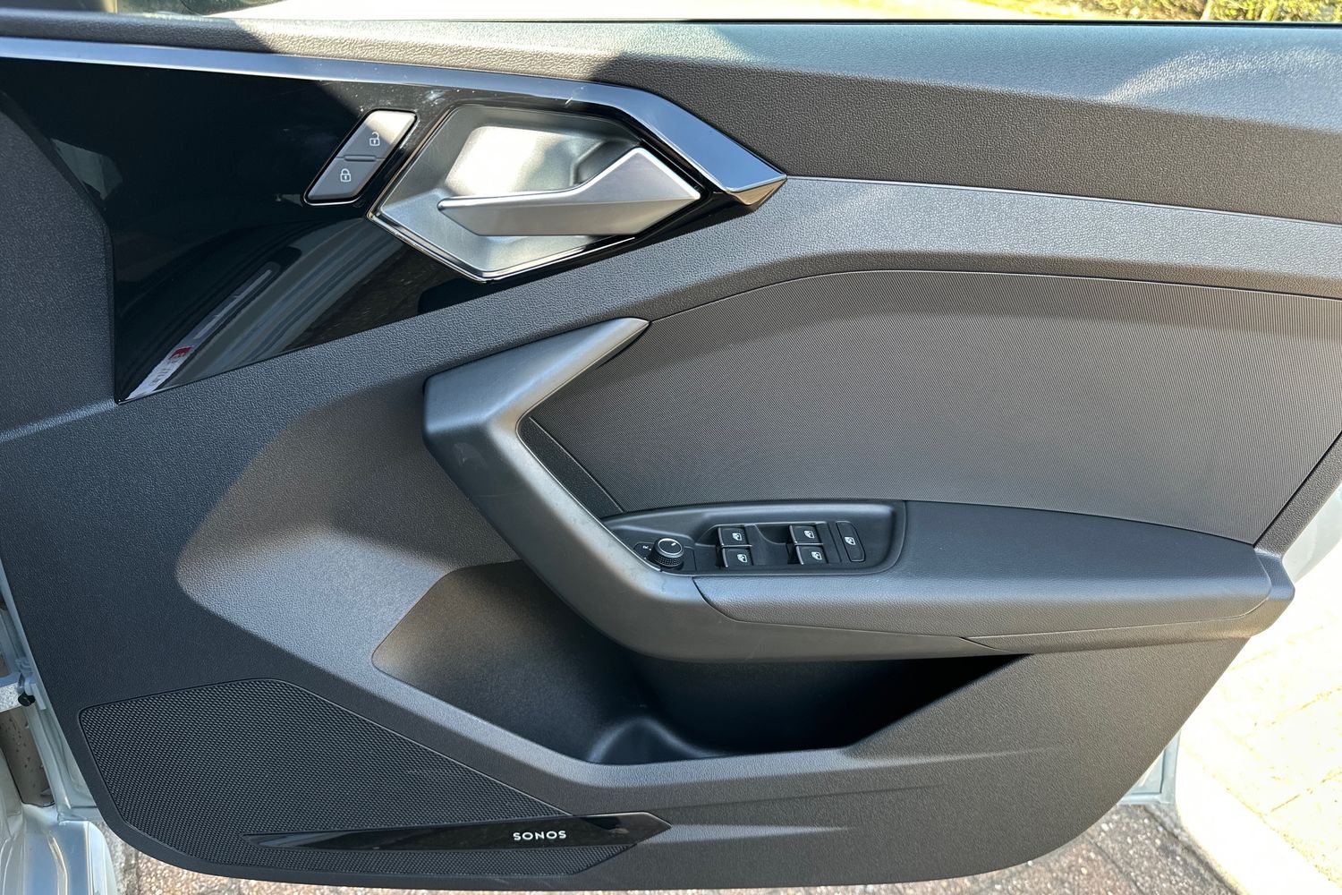 "Chrome elements on the mirror switch and power window switches and door pulls",
