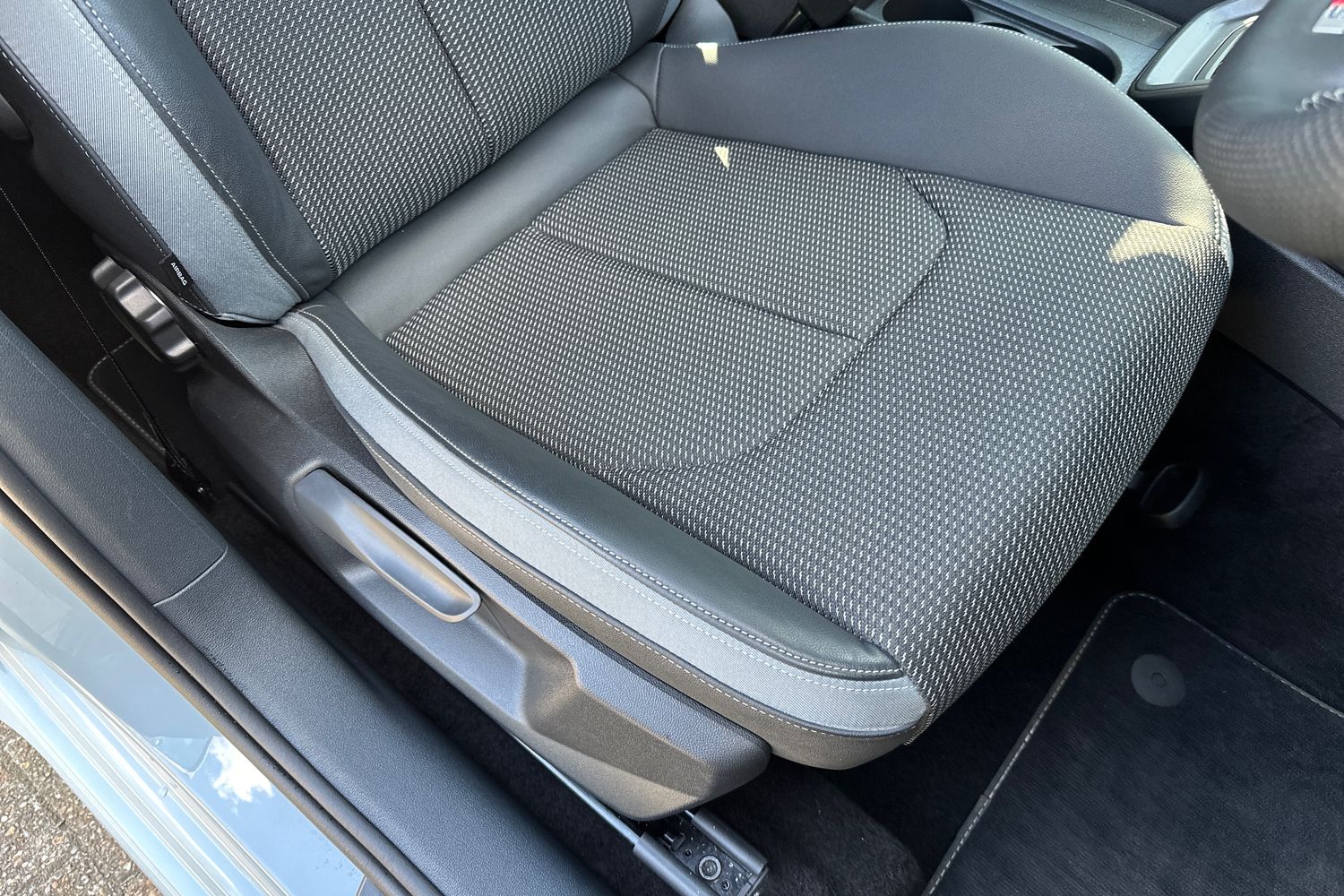 "Drivers seat with manual adjustment of seat travel and height and backrest angle with thigh support longitudinally sliding",