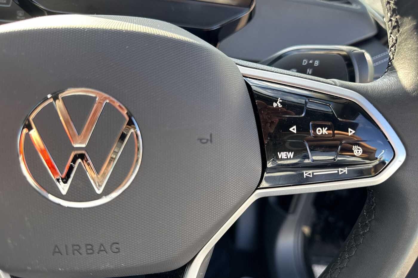 "3 spoke leather steering wheel with multi-function buttons with touch control, flattened on top and bottom, with S badging and contrast stitching",