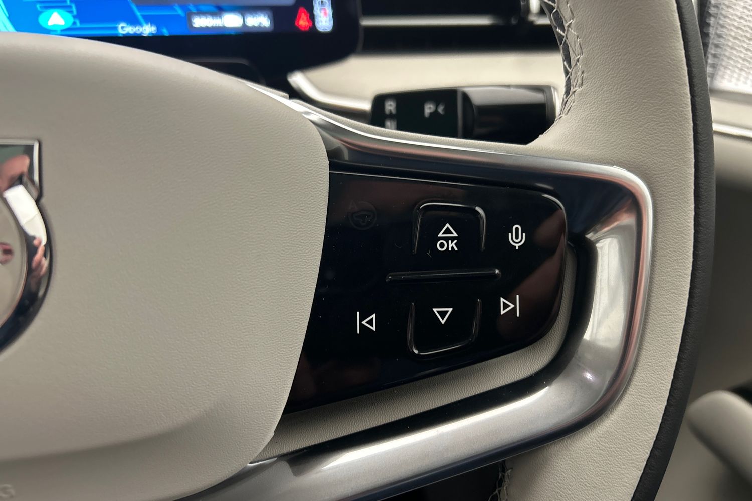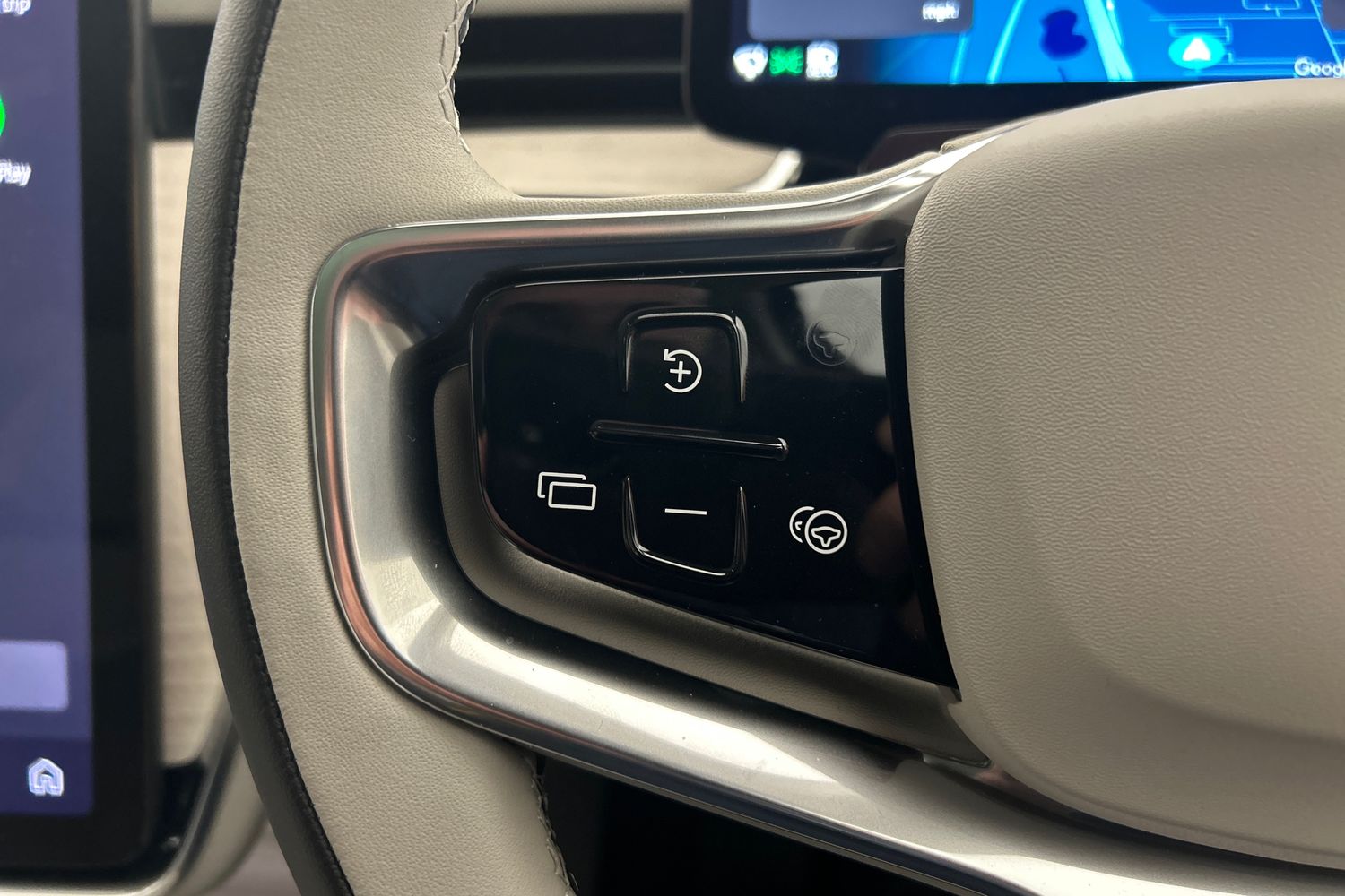 "High gloss black steering wheel remote infotainment controls",