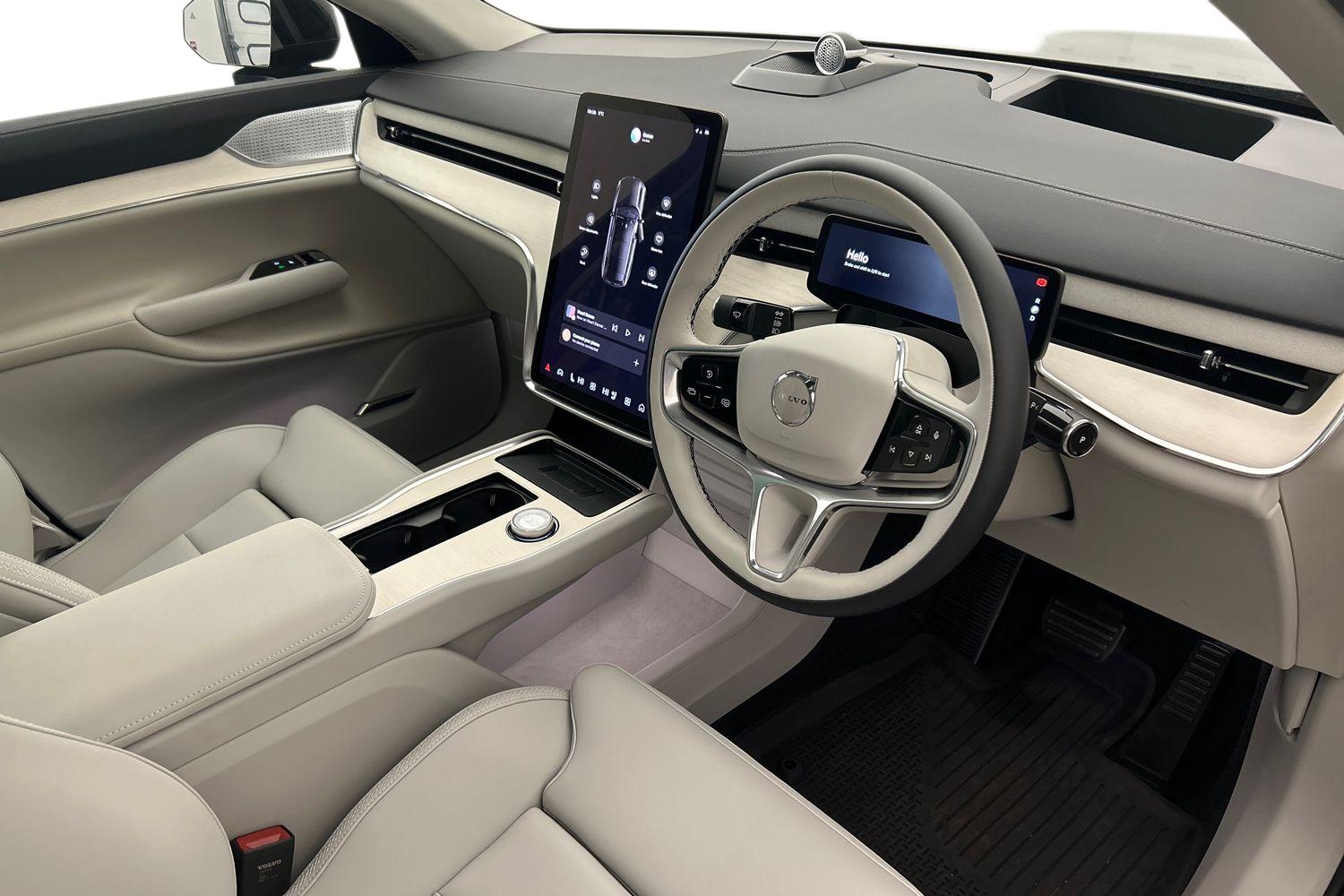 "features": "14.5\" centre console portrait touch screen, 360 degree surround view parking camera with 3D view, 8\" steering column mounted driver display, Bluetooth handsfree system, Driver awareness - Blind spot information system with steer assist, cross traffic alert with autobrake and rear collision warning and mitigation, Driver understanding system (Eye tracking and hands on steering wheel detection), Emergency services call system, Front and rear park assist, Google automotive services - Enabled entertainment apps, navigation with google maps, voice recognition with google assistant, Handsfree power tailgate opening and closing, Head up display in windscreen includes road sign information, distance alert, set speed and navigation, Intelligent driver information system (IDIS), Lane keeping aid, Park pilot assist with automatic steering and forward/reverse, Pilot assist, Power release/soft close doors, Roof mounted lidar, long range front racing radar, front and rear corner radars, front facing camera and side camera sensors, Speed limiter, Speed sensitive steering, Volvo cars services with app, Wireless apple carplay, Wireless/Inductive Mobile Phone Charging, 11 kW AC onboard charger, 6m 3 phase 32 amp type 2 / mode 3 charge cable, Active four-C chassis + four corner adaptive damper with electronic rear air suspension, Charging port located in nearside rear wing, Lithium-ion battery, 2 x front type C, 2 x 2nd row type C and 2 x 3rd row type C USB, Bowers and Wilkins high fidelity audio system with advanced 3D sound by dolby atmos/25 Speakers/1610W output/front headrest speakers and subwoofer, DAB Radio (Digital Audio Broadcasting), Low speed exterior sound speaker, Auto dimming interior and driver's door mirror, Automatic 1.3 mega pixel high definition headlights with active high beam and cornering function, Automatic headlight levelling system, Black auto folding and heated power door mirrors, Dark tinted windows - rear side windows and rear screen, Fixed panoramic glass sunroof, Front and rear electric windows, Headlight cleaning system, High gloss black lower door, lower front spoiler and rear diffuser mouldings, High gloss black window surround, Integrated roof rails in high gloss black, Laminated side windows, LED 3rd brake light, LED daytime running lights, Metallic paint, Puddle lights, Rain sensor with automatic windscreen wiper activation, Rear side wing doors, Rear wiper, 12V socket in luggage compartment, 2 individual 3rd row seats, 2 x front, 2 x rear and 2 x 3rd row cupholders, 3 individual seats in 2nd row, 3 spoke tailored steering wheel with deco and infotainment/vehicle controls, 4 zone electronic climate control with air quality system + pollen filter and air purifier PM2.5, 40/20/40 versatile split folding rear seat, Centre console cupholders and storage, Charcoal carpets and floor mats, Driver and front passenger seat power height and tilt adjustable with manual cushion extensions, Front headrests, Front load compartment (34 litres), Front massage seats, Heat pump (Enhanced cabin heating and cooling efficiency with optimal vehicle range), Heated front and rear outer 2nd row seats, Heated steering wheel, High level illumination (front cupholder, tunnel storage, luggage plus front and 2nd row footwell, cabin, reading door pocket and side step lights), ISOFIX attachment with top tehers on outer 2nd row and 3rd row seats, Load cover, Load protection net, Multi directional lumbar support, One pedal drive, Power folding 3rd row seats, Power front seat side support, Power height and reach adjustable steering column, Rear headrests, Second row integrated child seat for centre seat, Single front passenger seat, 7 three point seatbelts, Door opening alert, Dual stage driver/passenger airbags, First aid kit, Front seat inner airbags, Hill descent control, Hill start assist, IC (Inflatable Curtains) - Full Length, Intersection autobrake, Passenger airbag cut-off switch, Power child locks on rear doors, Power parking brake with auto hold function, Road sign information display, Run off Road Mitigation, Seat occupancy sensor, Seatbelt reminder and pretensioners, SIPS (Side Impact Protection System), Slippery road and hazard light alert, Tyre pressure monitoring system, Warning triangle, WHIPS whiplash protection system - front, Anti-theft alarm including immobiliser/volume sensor + level sensor, Keyless entry and start, Locking wheel nuts, Phone as key/1 x key integrated remote/2 x NFC cards, Illuminated dashboard and door deco panels, Tailored instrument panel and door tops, 22\" 5 spoke diamond cut/high gloss black alloy wheels, Tyre sealant kit and compressor, ",