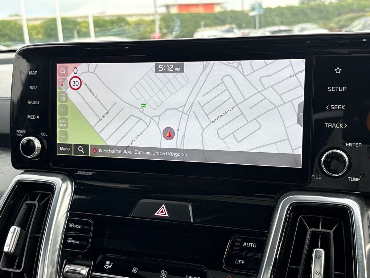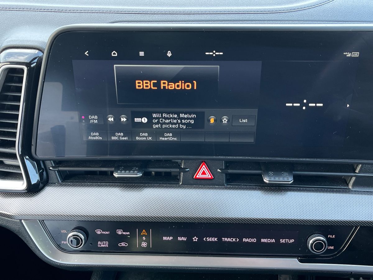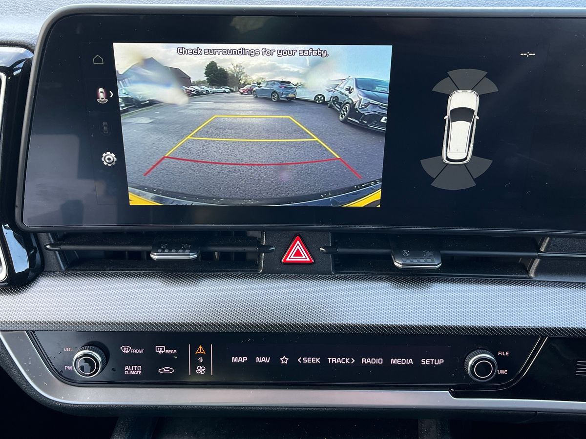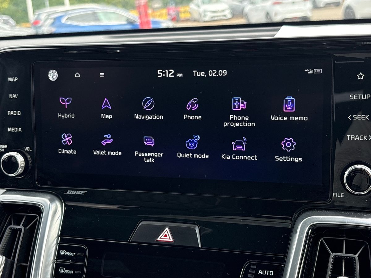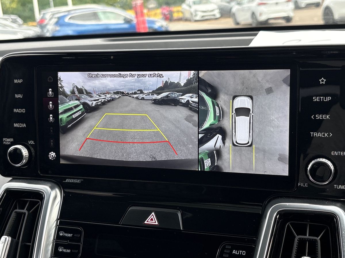 "features": "12.3\" Display with navigation, 4.2\" supervision colour cluster display, Apple car play/Android Auto with voice control, Drive mode selector, E-call, Forward collision avoidance assist (FCA) - city/pedestrian/cyclist/junction covering, Front and rear parking sensors, Intelligent speed limit assist, Kia Connect (UVO), Lane Following Assist (LFA), Lane keep assist, Low washer fluid warning, Rear view monitor, Reversing camera system integrated into centre fascia screen, Speed sensitive power steering, Trip computer, Windscreen washer level indicator, Intelligent Stop and Go, 6 speaker audio system, Bluetooth audio streaming, DAB Radio with MP3, Rear USB port, Steering wheel mounted audio controls, USB C type charging ports on centre console, USB C type charging ports on side of front seats, USB port for connection of a media device, All round electric windows with drivers and front passenger auto up/down function, Automatic headlight control system, Automatic window defogger, Backlite glass heated with timer, Black bumpers, Body colour and black bumper with silver accents, Body colour exterior door handles, Body colour radiator upper garnish and door garnish, Electrically adjustable/heated/folding door mirrors with LED indicators, Front and rear chrome skid plates, Gloss black door mirrors, Gloss black radiator grille, Gloss black side sill and wheel arch body mouldings, Glossy black roof rack, High beam assist, Interior electrochromic mirror, LED daytime running lights, LED front fog lamps, LED headlamps (low and high beam - MFR type), LED High mounted stop light, LED rear combination lamp, Rain sensing wipers with aero blades, Rear fog lamp, Rear privacy glass, Rear side wing doors, Rear spoiler, Rear wiper, Satin finished beltline, Silver coloured inserts to bumpers, Tinted rear glass, Trailer stability assist, 12V power socket in front centre fascia and luggage compartment, 2nd row personal lamps, 3 seat bench in 2nd row, 3 x passenger assist grips, 40/20/40 split folding rear seat, All-round height adjustable headrests, Black headlining, Centre console storage box, Cupholders in rear armrest, D-Shaped sports leather steering wheel and perforated inserts with GT-Line logo, Door courtesy lamps, Drink holder at centre armrest, Driver and front passenger side sunvisors with illuminated vanity mirrors, Driver's seat manual height adjust, Drivers seat power lumbar support, Front and rear door storage, Front seat and rear pockets, Front/rear centre armrests, Gear shift indicator, Glovebox illumination, Heated front seats, Heated steering wheel, Interior door lock/unlock function, ISOFIX Child seat top tethers and anchor fixings outer rear seats, Luggage area light, Luggage area load cover, Luggage net with hooks, Metal paint interior door handles, Overhead console lamp, Rear cabin light, Rear coat hooks, Single front passenger seat, Sports pedals, Suede leather upholstery, Three zone climate control, Tilt/telescopic adjustable steering wheel, Ventilation ducts to rear compartment, Active front headrests, All round 3-point seatbelts, Anti-lock braking system (ABS), Dual front side airbags, Dual horn, Electronic parking brake, Electronic stability control with downhill brake control, Front passenger airbag cut-off switch, Front seatbelt pretensioners + load limiters, Height adjustable front seatbelts, Hill start assist control (HAC), Impact sensing auto door unlocking, Multi collision brake assist, Rear door child safety locks, Rear seat alert system, Traction control, Twin curtain airbags, Twin front airbags, Tyre pressure monitoring system, Advanced anti-theft system including immobiliser and alarm, Door deadlocks, Engine Start/Stop Button with Smart Entry System, Locking wheel nuts, Speed sensitive auto door locking, Visible vehicle identification number, Aluminium pattern finish centre fascia and door garnish, 19\" GT-Line alloy wheels, Tyre mobility kit, ",