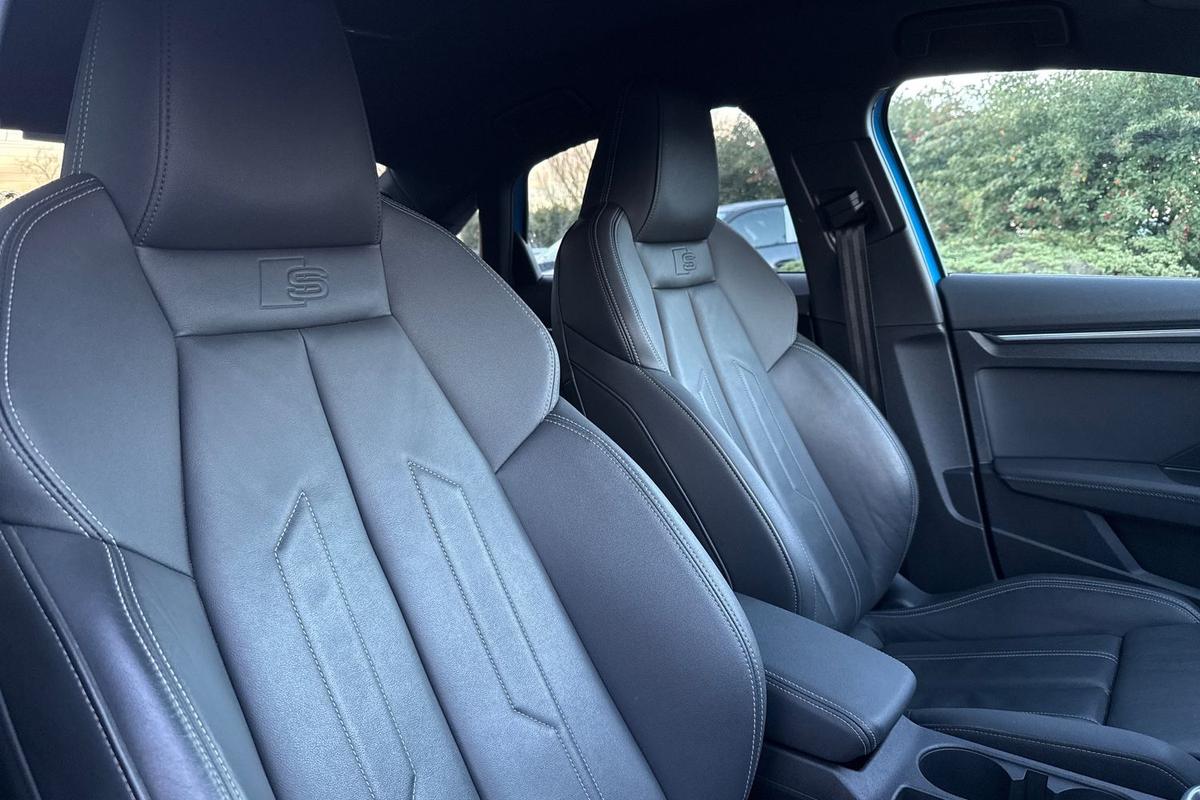 "Twin leather upholstery with front sports seats S embossed logo"