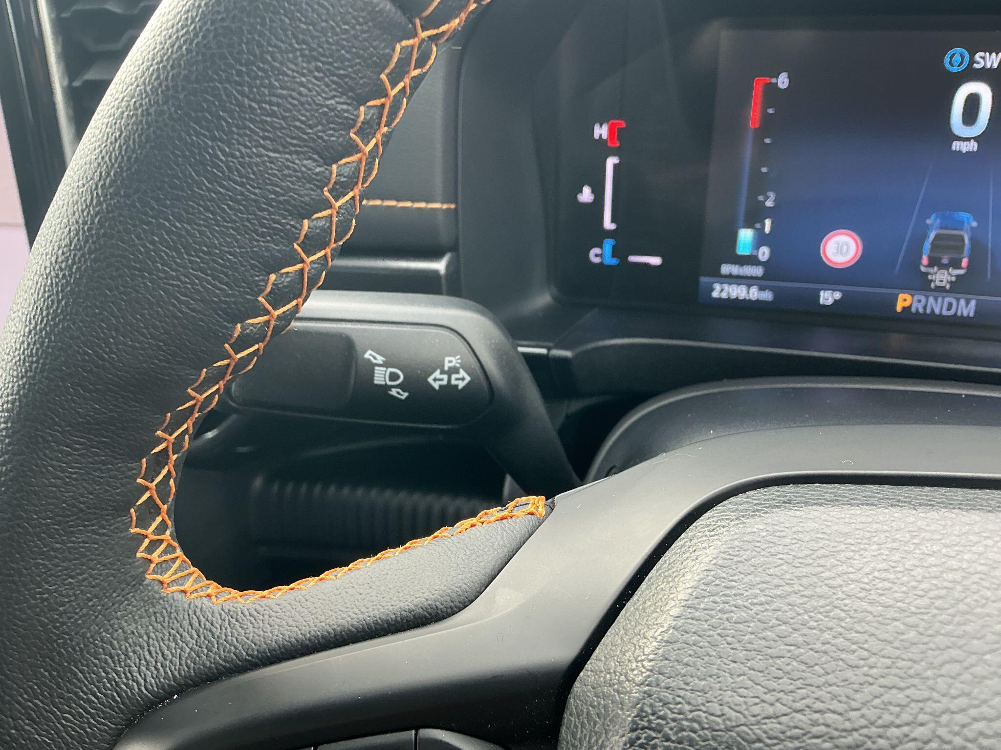 "Information display switches behind steering wheel",