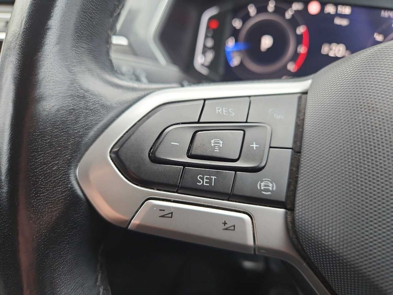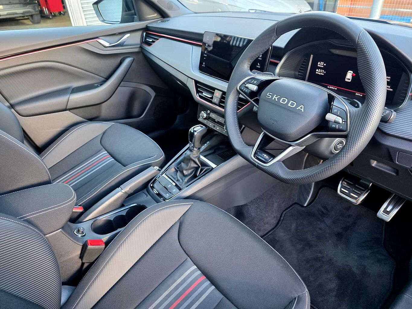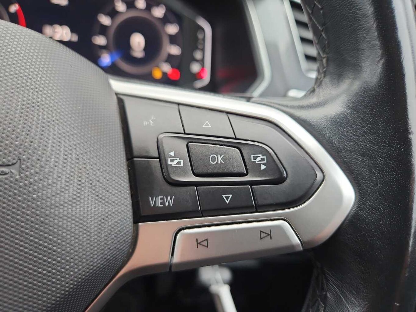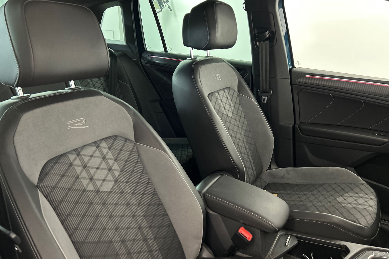 "Red stitching on steering wheel"