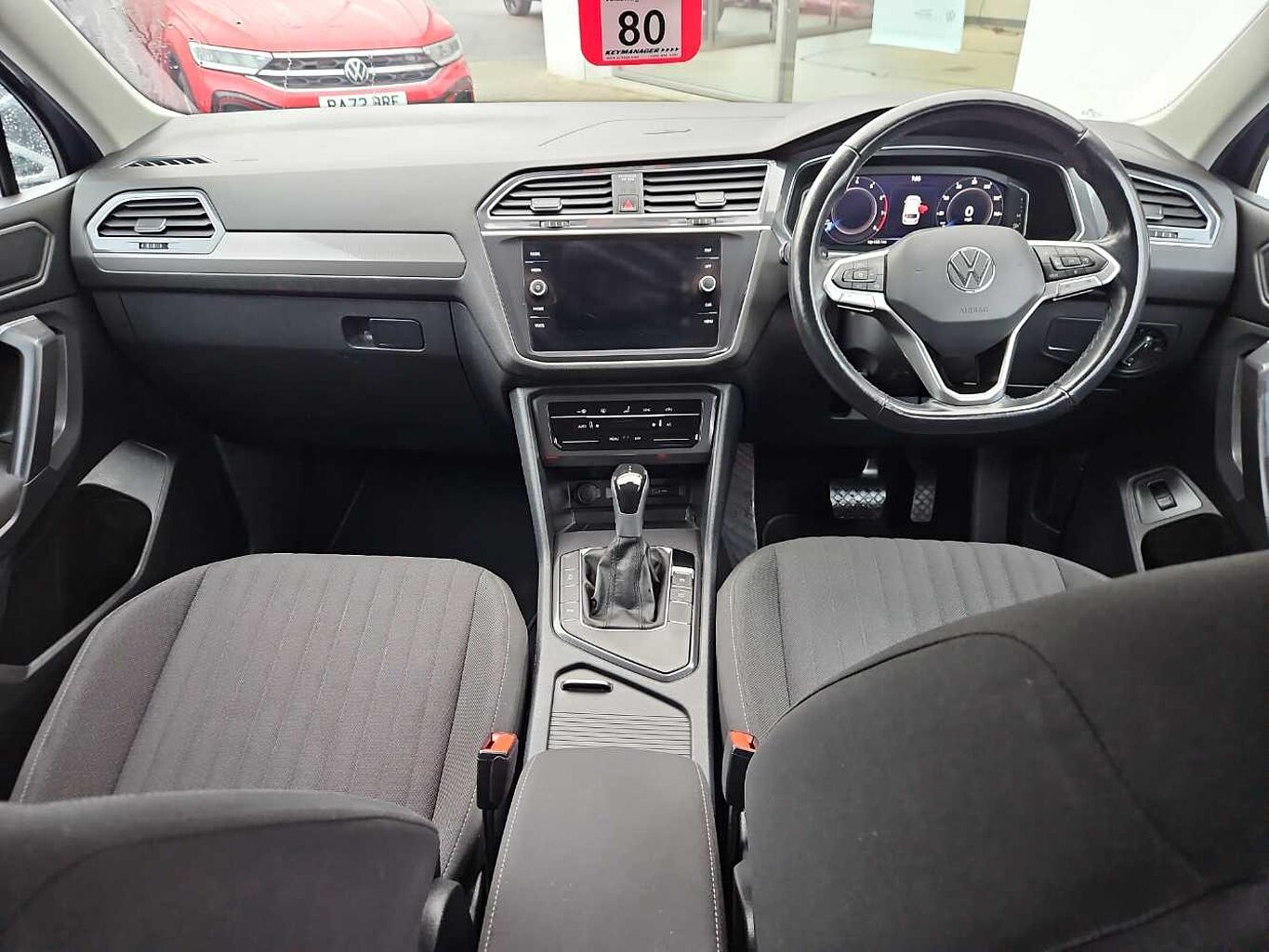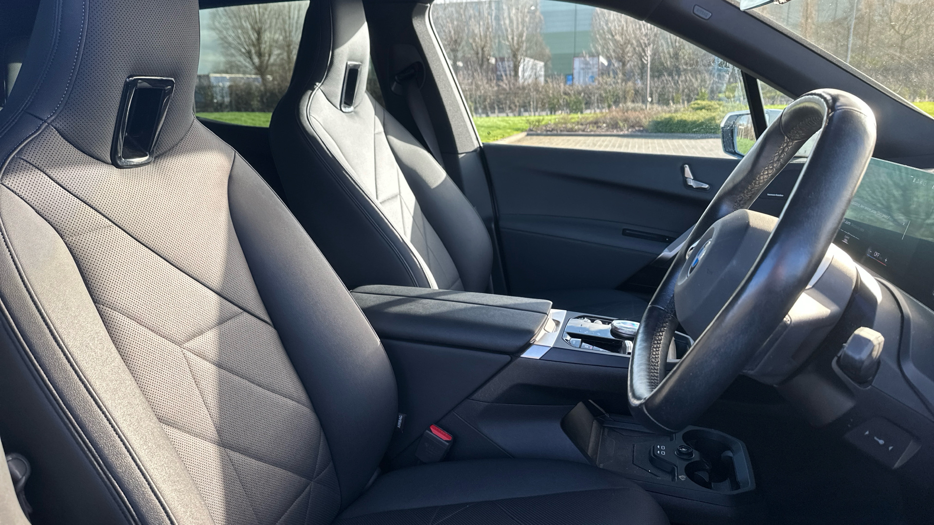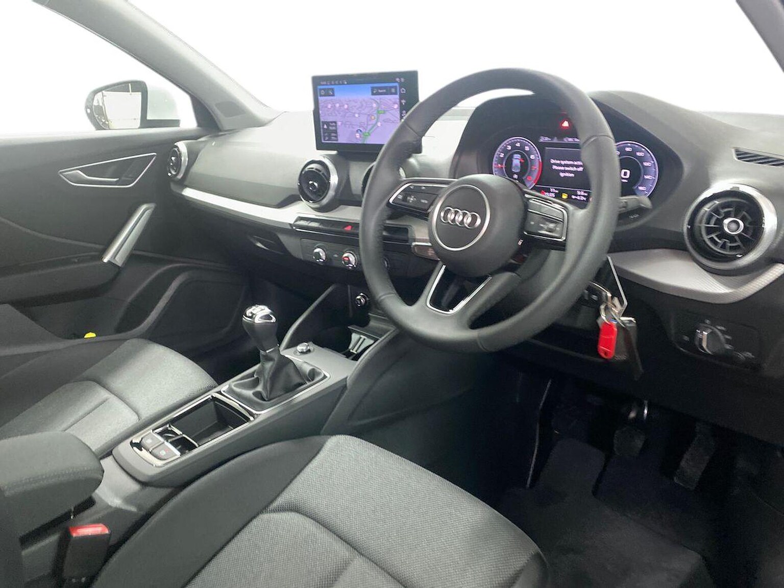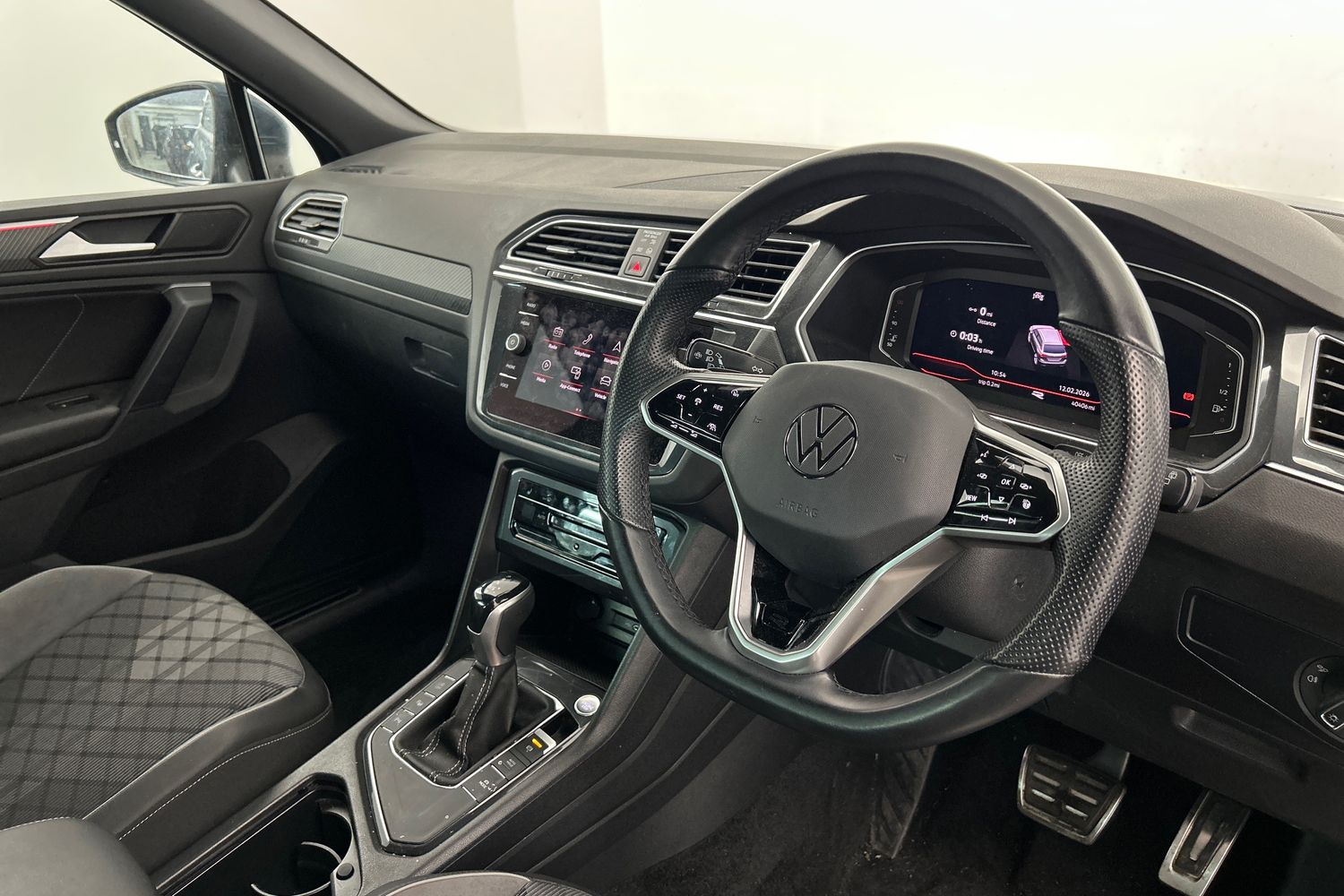 "Red stitching on steering wheel"