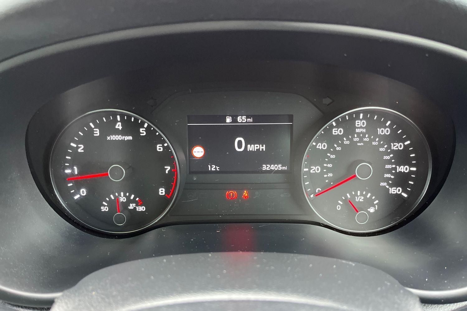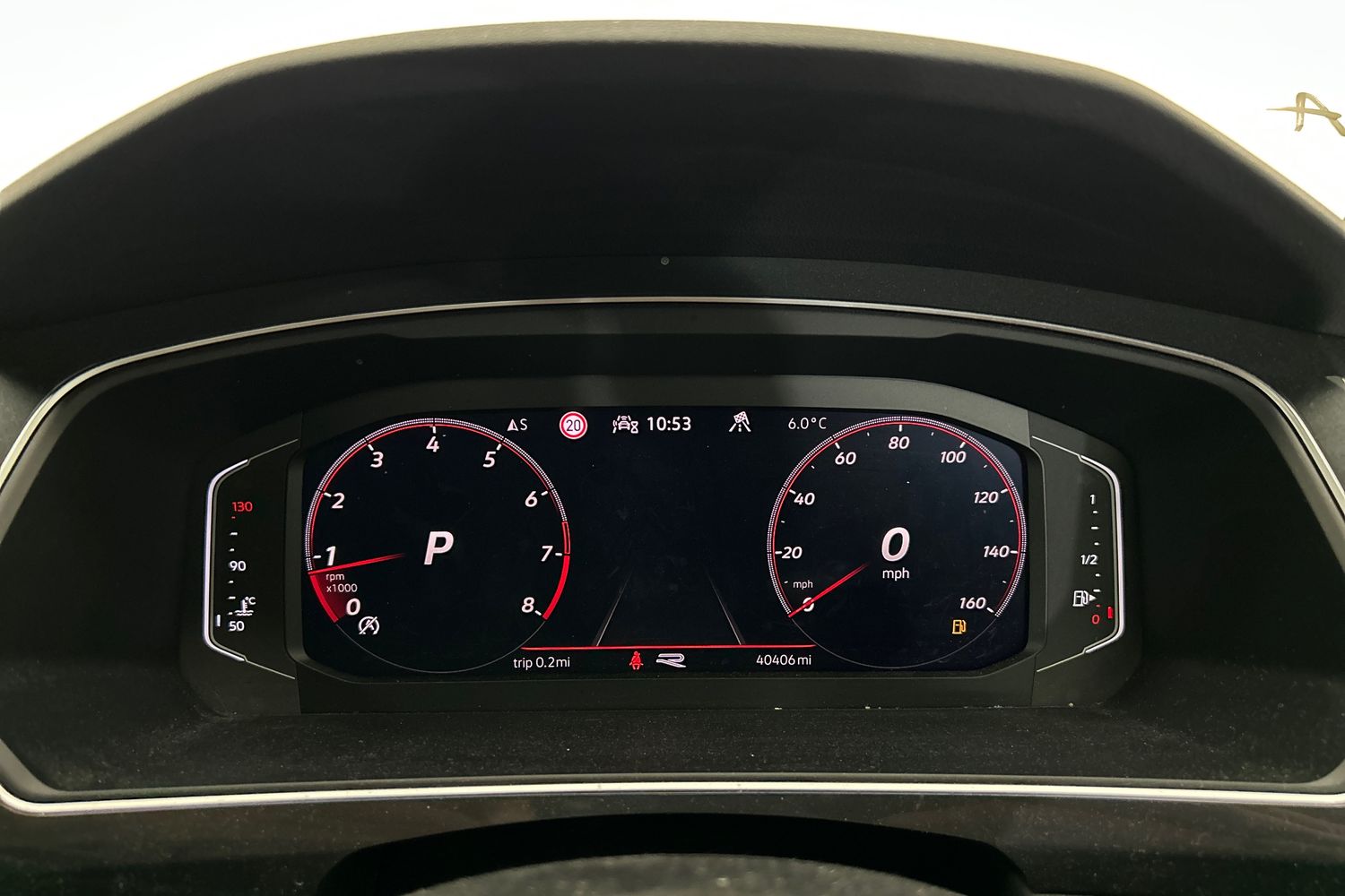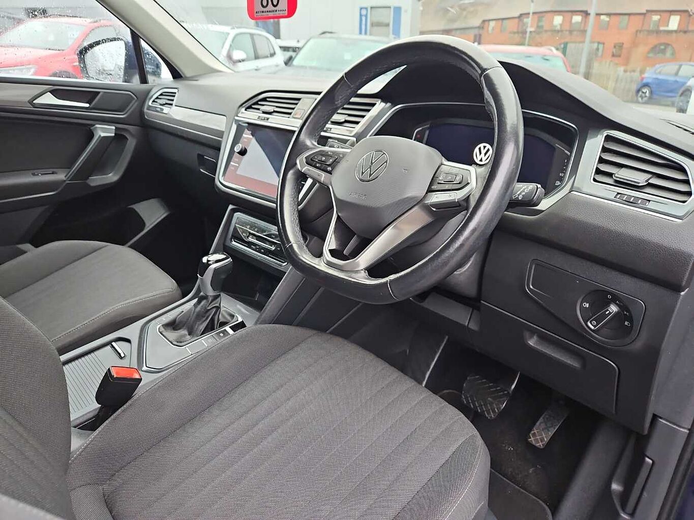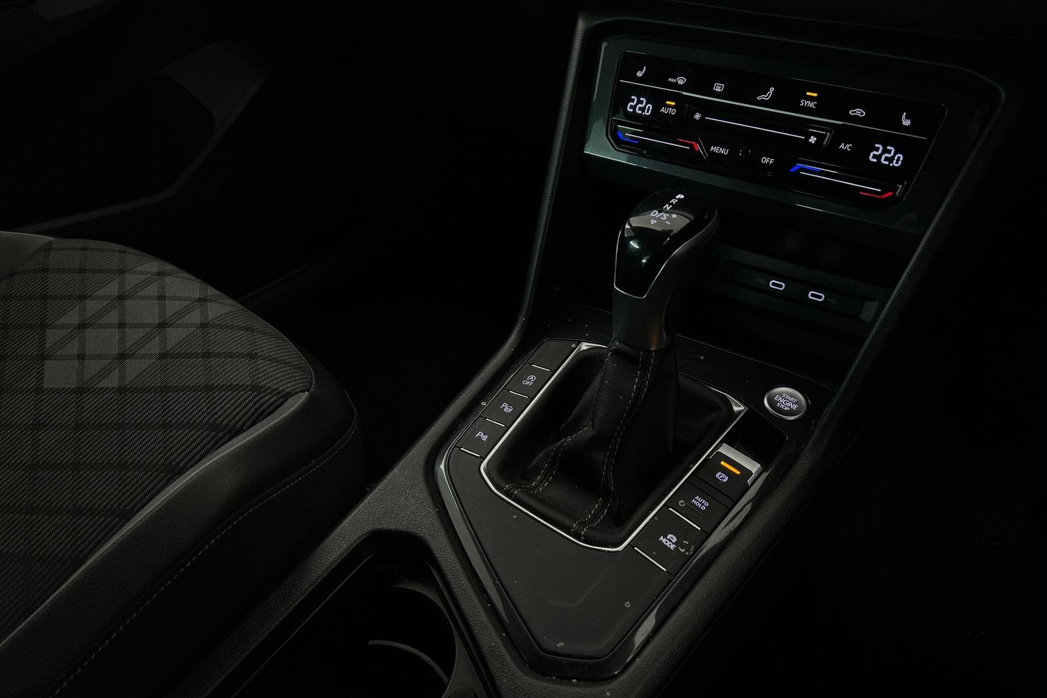"Red stitching on steering wheel"