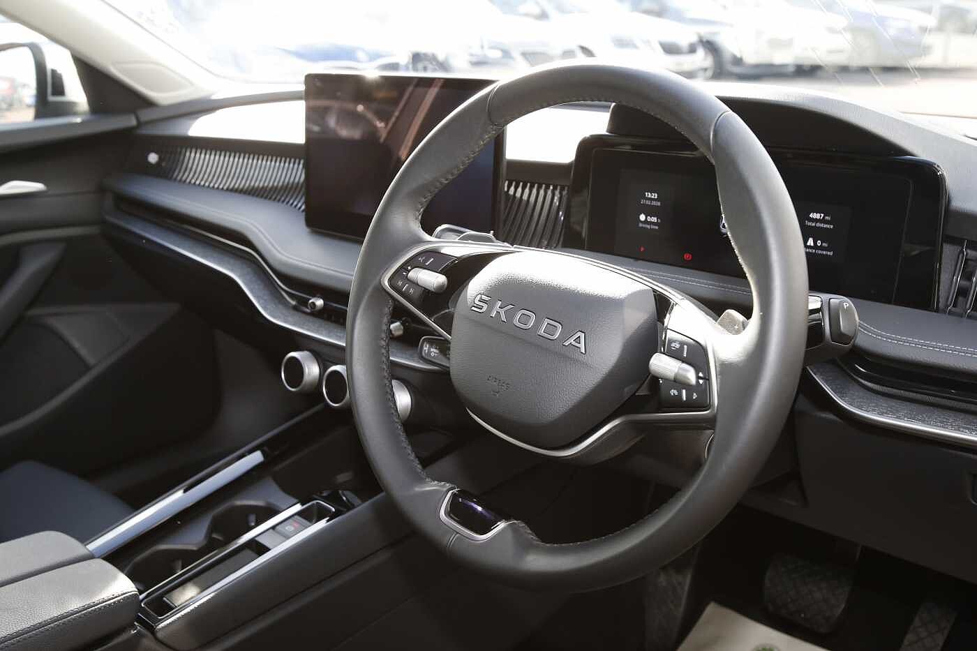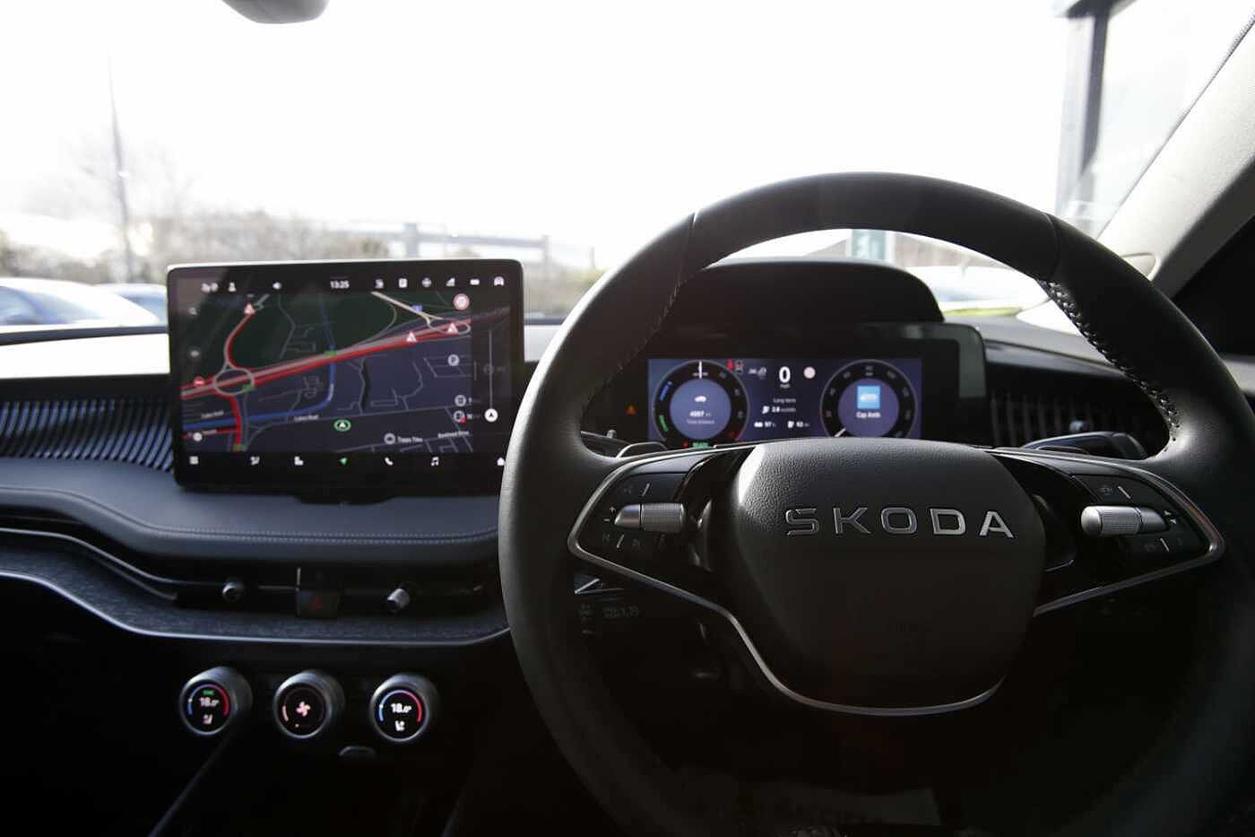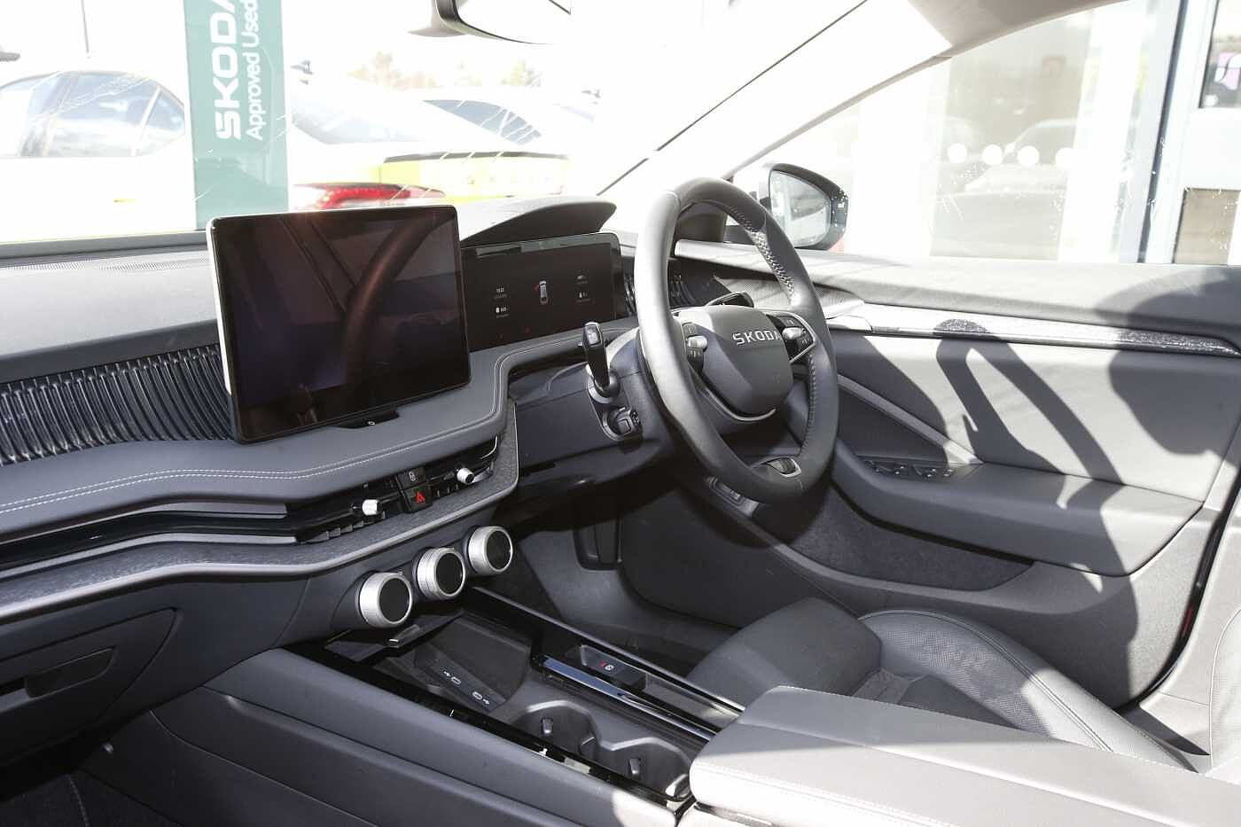 "features": "13\" touchscreen display, 15W wireless charging with cooling function, 5\" Digital cockpit, Blind Spot Detection (BAS), Bluetooth system, Drive mode selector, Driver alert system, E-call, Electrically operated tailgate with kick activation (virtual pedal), Electronic engine sound, Emergency steering support with turn assist, Exterior temperature indicator, Front and rear parking sensors, Front assist with assisted automatic braking to vehicles, pedestrians and cyclists, Gesture control, Predictive adaptive cruise control with traffic jam assist, Progressive steering, Satellite navigation system, Skoda Connect iV remote services with charging, air conditioning and smart schedules, Speed assist, Speed limiter, Traffic sign recognition, Travel assist plus with emergency assist, lane assist plus with narrow lane assist and urban evasive steering support, Voice control system, Washer fluid level indicator, Wi-Fi hotspot, Wireless smartlink, 175 kW DC charging, 6m mode 3 cable (32A), Four wheel drive, Sports suspension, 45W USB-C ports (charging + data) front and rear, DAB Digital radio, Auto dimming rear view mirror, Body colour door mirrors and handles, Body colour door sills, Dashboard and door moulding light in multiple colours, Door mirror memory, Dynamic headlight range control with cornering light function, Electric adjustable heated folding door mirrors with boarding spots and welcome logo, Electric front and rear windows, Full LED Matrix beam headlights with variable light distribution, Gloss black roof rails, Gloss black tailgate lettering, Gloss black window surround, Heat insulating darkened glass in side and rear windows, Heat insulating glass in windshield, Integrated fog light with all-weather function, LED daytime running lights, LED rear lights with animated indicators, LED third brake light, Light assistant (coming and leaving home), Privacy glass and acoustic side windows, Radiator grille in gloss black, Rain and light sensors, Rear side wing doors, Rear spoiler, Rear window wiper with washer system and intermittent control, Safety reflectors on front and rear doors, Sports bumpers, Variable front intermittent wipers, 12V socket in boot, 1x umbrella, 3 rear headrests, 3 seat bench in 2nd row, 3-spoke leather heated sports multifunction steering wheel with paddles for recuperation level selection, 60:40 foldable rear seat with sliding adjustment and backrest angle adjustment, Aluminium pedals, Black artificial leather dashboard with grey stitching, Black headlining, Black textile floor mats with grey stitching, Boot lighting, Electrically adjustable driver seat with memory function, Extended interior noise suppression, Front courtesy lights, Front reading lights, Front sport seats, Front sports head restraints, Heated front seats, Height adjustable drivers seat, Height adjustable front passenger seat, High centre console with armrest, Isofix child seat fittings in outer rear seats with top tether, Isofix child seat preparation for front passenger seat, Laminated soft-touch plastic knee rest, LED ambient lighting, Manual rear window blind, Manually adjustable steering column, Massage functionality for drivers seat, Microsuede/artificial leather upholstery, Pollen filter, Power adjustable lumbar front seats, Rear reading lights, Single front passenger seat, Sliding boot cover, Sunvisors with illuminated vanity mirrors, Tri zone climate control, White front and rear footwell lighting and door handle lighting, Advanced package with head up display - Enyaq, 3 point height adj front seatbelts + pretensioners, Auto door release and activation of warning lights in the event of an accident, Central interaction airbag, Crew protection assist, Driver and front passenger airbags, ESC (incl. ABS+MSR+ASR+EDS+HBA+DSR+RBS+MKB), Front and rear three point safety belt on all seats, Front disc brakes, Front passenger airbag deactivation switch, Front side airbags with curtain airbags, Height adjustable seatbelts, Power child locks, Rear drum brakes, Rear side airbags, Two tone horn, Tyre pressure monitor, Visual and acoustic seat belt reminder, Warning lights in front doors, Anti theft alarm system with interior monitoring, backup horn and towing protection, Central locking system with SAFE system, Keyless entry and start/stop system advanced with walk away locking, Carbon effect decorative inserts, Matte black lining around drive selector, Anti-theft wheel bolts protection, Tyre repair kit with compressor, ",