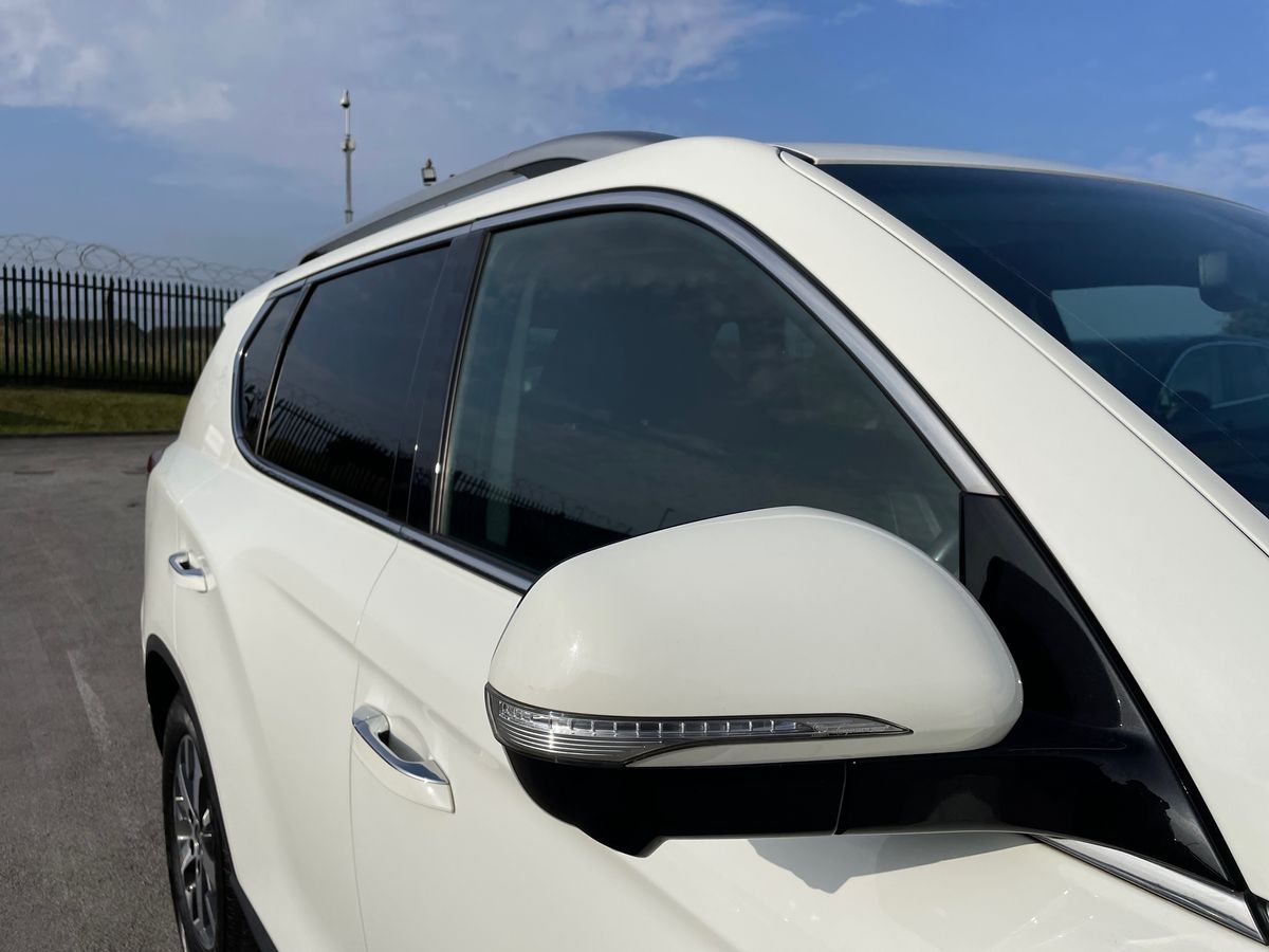 "High gloss black door mirrors and window surround",
