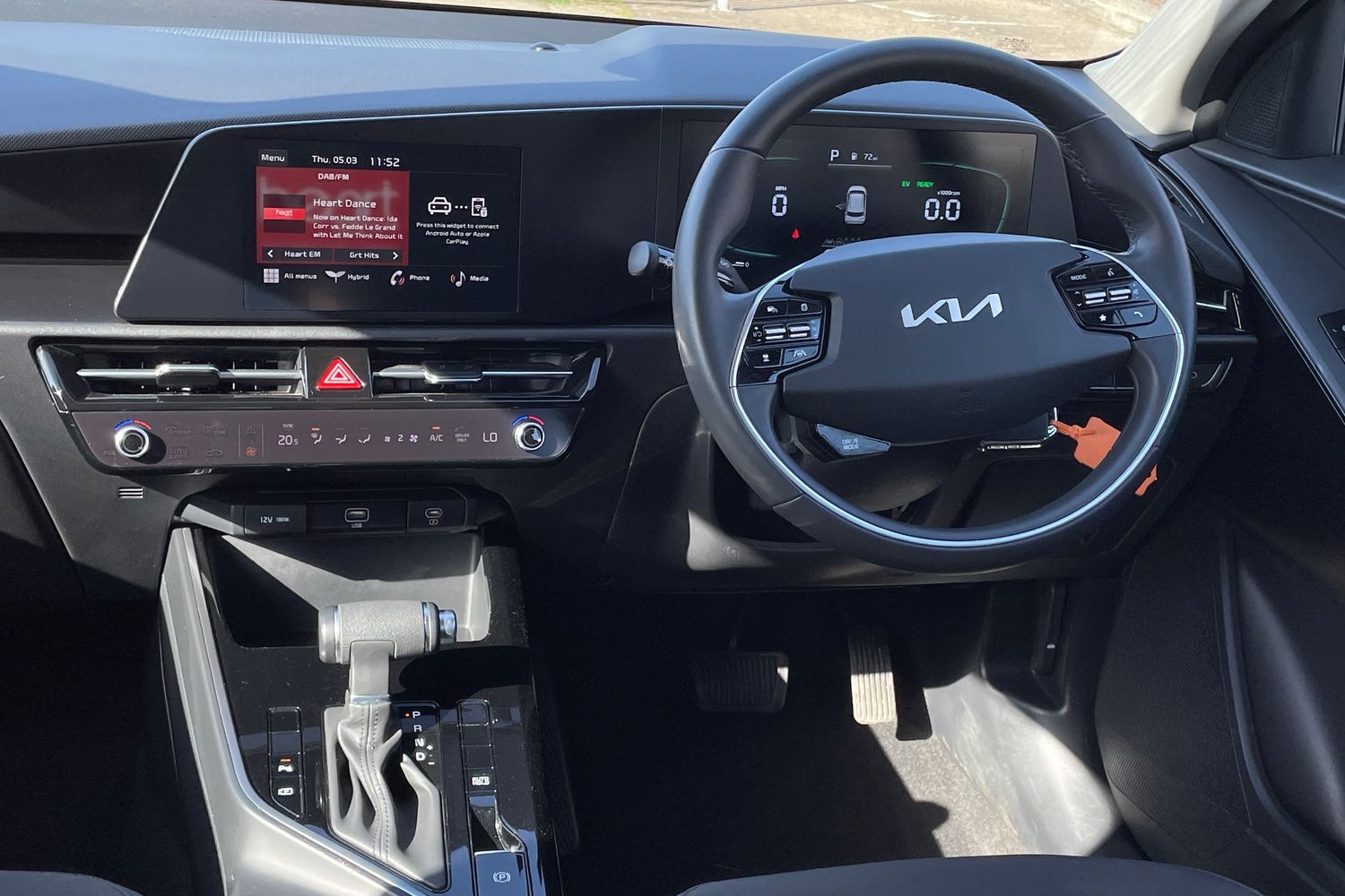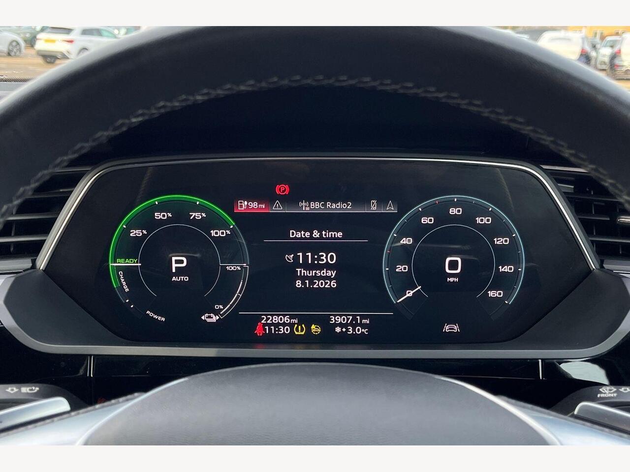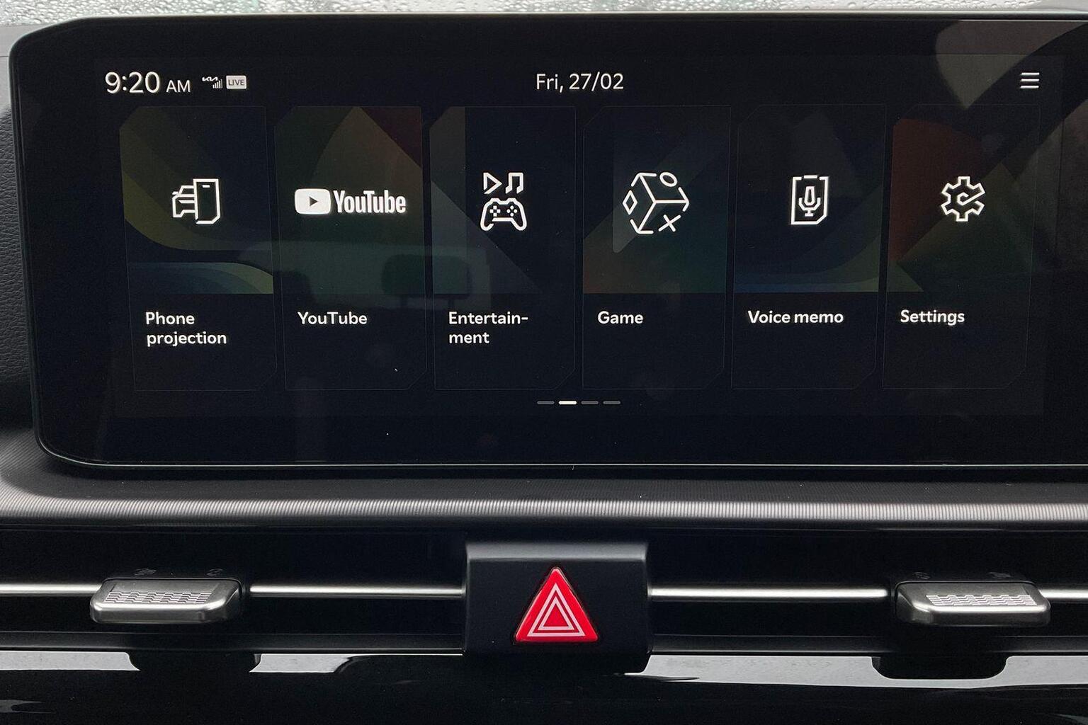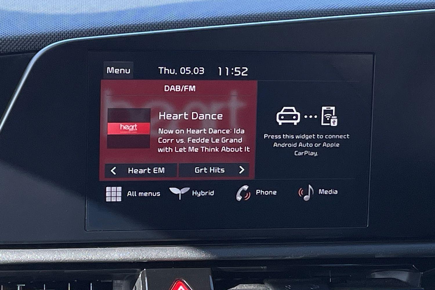 "Central facia display with digital clock, outside air temperature and audio information",