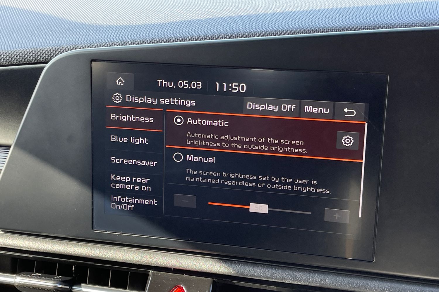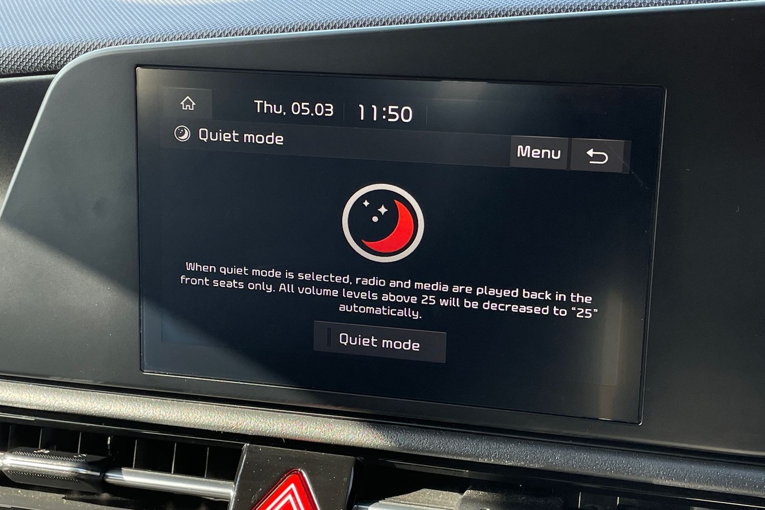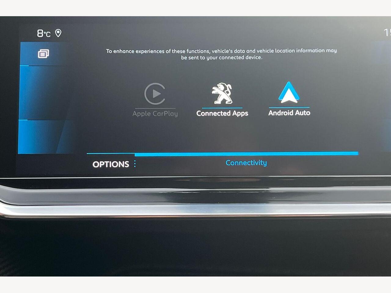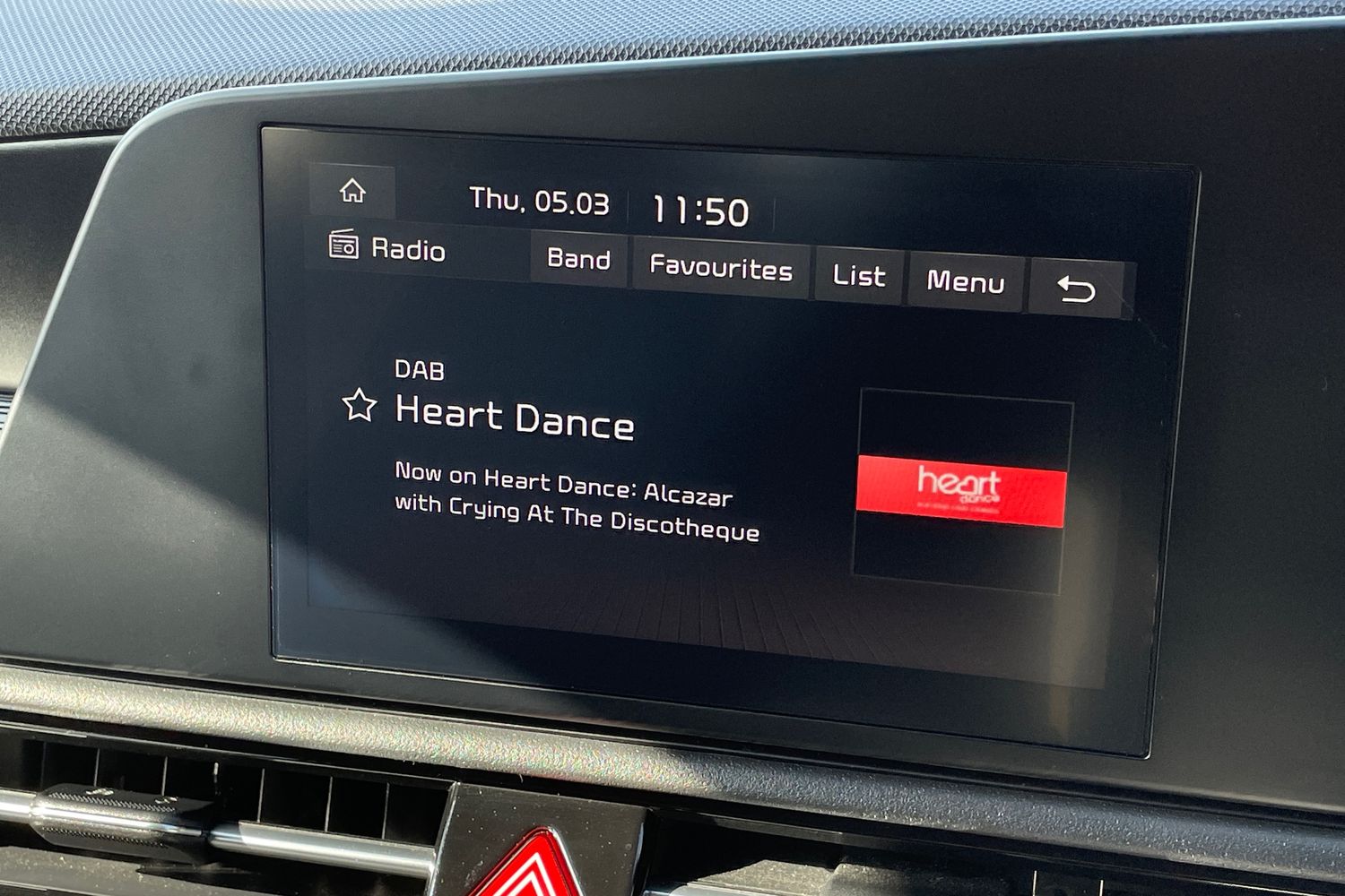 "Central facia display with digital clock, outside air temperature and audio information",