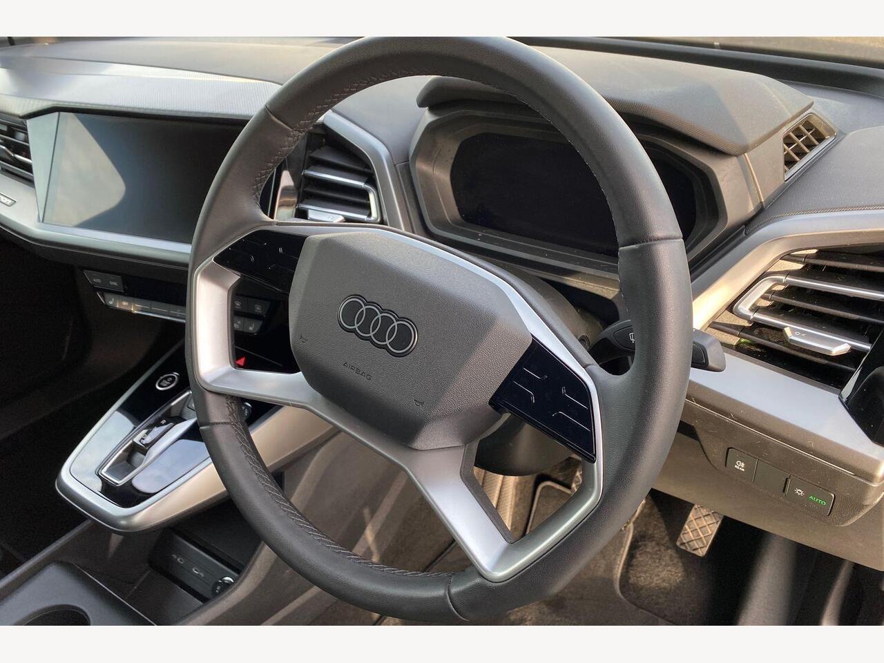 "3 spoke flat bottomed leather effect steering wheel with satin chrome effect bezel",
